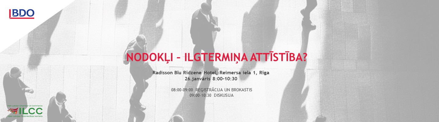 Īrijas Latvijas Tirdzniecības kamera (ILCC) un BDO Latvia aicina Latvijas uzņēmējus, investorus, NVO un visus interesentu piedalīties sarunās par nodokļiem brokastu formā par tēmu ”Nodokļi – ilgtermiņa attīstība?”